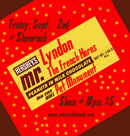 Friday, Sept. 2nd @ the Shamrock w/ Lyndon & Pet Monument. (flyer)